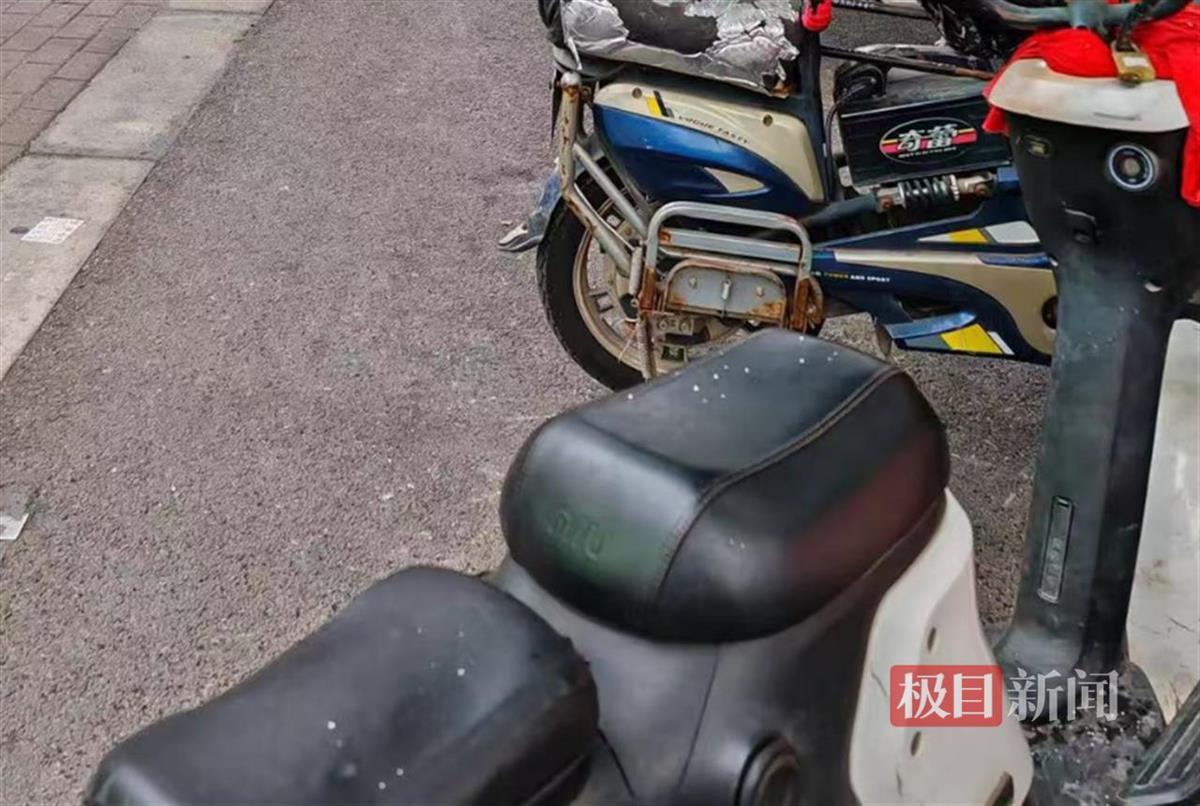 在洪山区杨园南路曲水兰亭前路边的电动车座椅上看到,市民胡先生看到落下的雪子越来越多,越来越密……