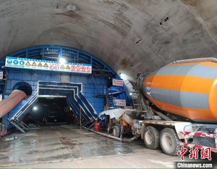 中新网阳江12月23日电 (记者 王坚)随着最后一车混凝土泵送完成,粤西重要交通道路——阳春至信宜(粤桂界)高速公路(下称“阳信高速”)板塘岭隧道右洞最后一板二衬混凝土于23日浇筑,标志着全长2278米板塘岭隧道右洞主体全部完成,为全线如期通车奠定了坚实基础。