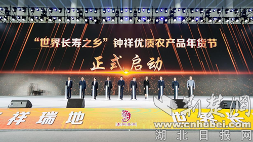 湖北新布局生态农业发展有限公司今年12月入选“江汉大米”核心企业,该公司进行了新品推介。湖北钟瑞祥产业投资集团有限公司推介了“钟祥四宝”。钟祥市农业农村局党组书记、局长欧斌为七名钟祥优质农产品武汉推广大使授牌。随后,世界长寿之乡钟祥优质农产品年货节启动。