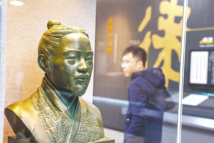云梦县博物馆展示的睡虎地秦简主人“喜”的复原像。(湖北日报全媒记者 倪娜 摄)