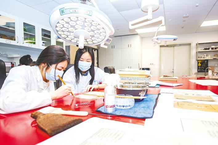 11月8日,湖北省博物馆工作人员在进行古籍修复。 (湖北日报全媒记者 何宇欣 摄)