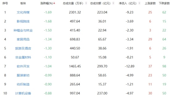 行业板块方面,轨交设备、电机、光伏设备等板块涨幅居前,文化传媒、影视院线、种植业与林业等板块跌幅居前。