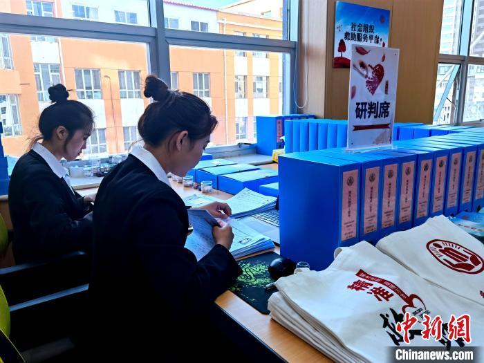 资料图为工作人员正在核准救助对象基本资料。李隽 摄