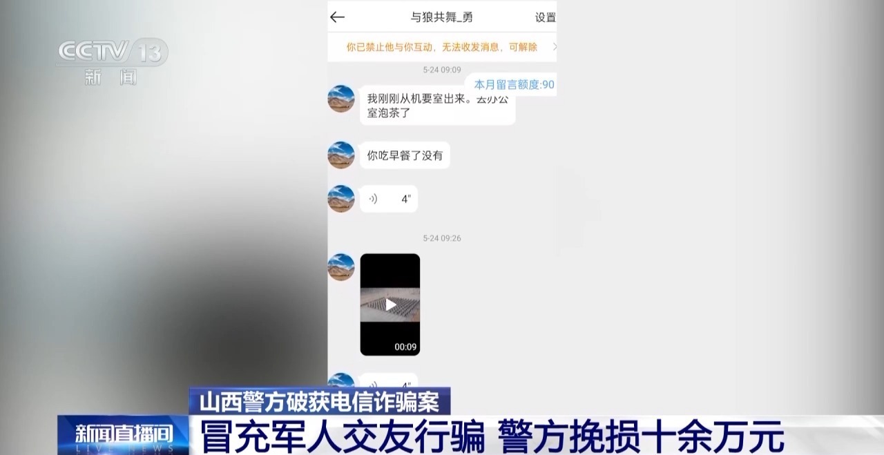 前不久,山西大同灵丘县警方公布了一起冒充军人实施电信诈骗的案件。诈骗分子冒充军人进行网络交友,一步步获取受害人信任后,进而引导受害人在虚假投资理财平台投资,实施电信诈骗。