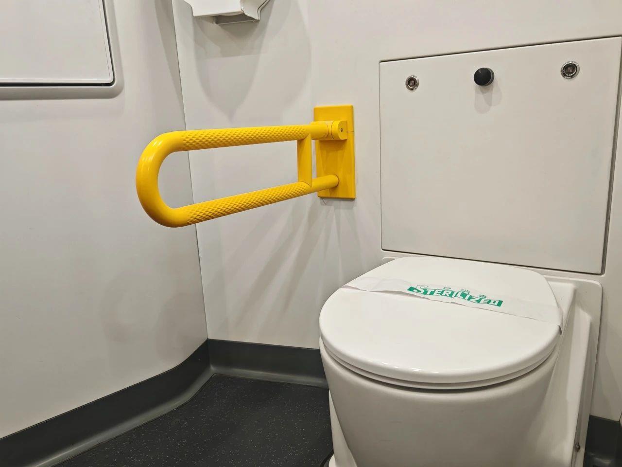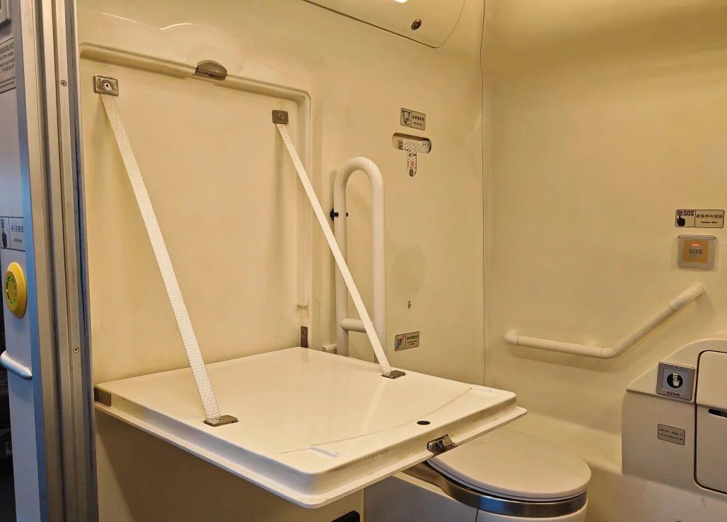 无障碍卫生间里设置了扶手,方便重点旅客使用。
