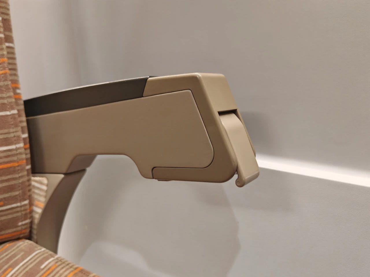 如需调节椅背的角度,可寻找扶手上的按钮,扳动或按动后,便可按照需求调节角度了。调节座椅靠背前,请观察一下后排小桌板上是否放置水杯等物品。