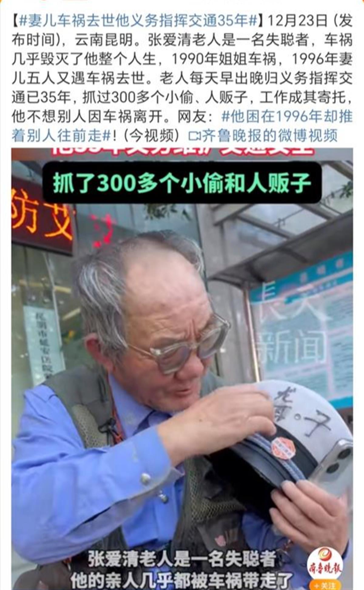 此后,他开始每天早出晚归,义务指挥交通,至今已35年。在这一过程中,他抓过300多个小偷、人贩子,还用捡空瓶卖来的钱资助贫困生。工作成为了他的寄托,他不想别人因车祸离开。(据12月25日齐鲁晚报)