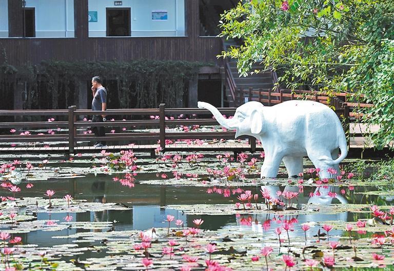“有野象出没!”在云南西双版纳野象谷一期观象栈道,人们循着导游的声音看去,茂密的原始森林间,一头大象正带着小象在嬉水、觅食,温馨和谐的画面让人感动。