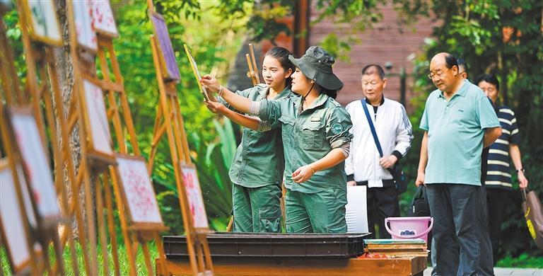 12月7日,西双版纳野象谷,游客在工作人员指导下体验象粪造纸的独特工艺。
