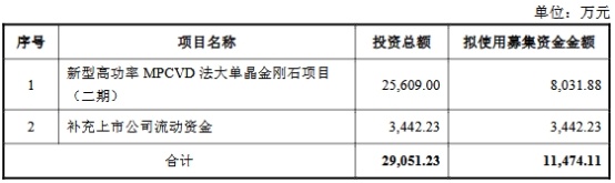 2024年12月18日,国机精工披露《2022年度向特定对象发行股票预案(修订稿)》,本次发行募集资金总额不超过11,474.11万元(含),扣除发行费用后拟用于以下用途:新型高功率MPCVD法大单晶金刚石项目(二期)、补充上市公司流动资金。
