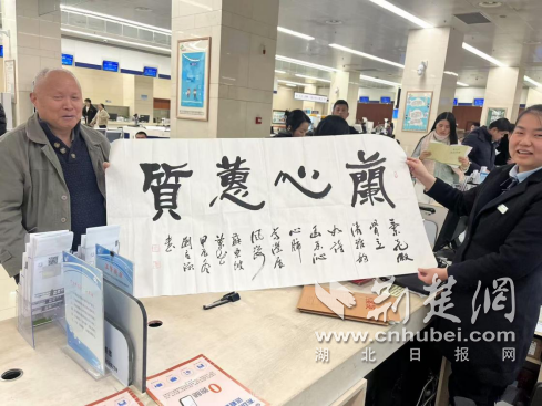 荆楚网(湖北日报网)讯(通讯员 杨凤)12月24日,岁末寒冬,东湖高新区不动产登记窗口迎来了一幕温暖的场景。武汉工程大学经济学教授、中国书法家协会会员刘先生,带着满心的感激与敬意,将自己精心创作的四幅书法佳作,赠予不动产窗口工作人员,以一种别具文化底蕴的方式,表达对其高效且热情服务的真诚认可。