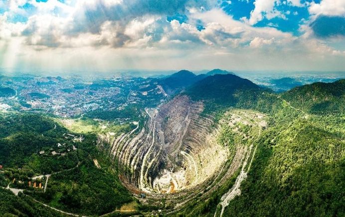 巨大的“天坑”,哺育着新中国近代工业茁壮成长。新中国诞生之初,黄石的钢产量超过中南地区五省二市的总和,从新中国成立到20世纪末,黄石累计向国家提供铁矿石近2亿吨、铜精矿近100万吨、各种非金属矿近6亿吨。