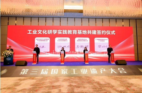 工业和信息化部工业文化发展中心携手内蒙古蒙牛乳业(集团)股份有限公司、南方电网广东广州供电局、北京中关村工业互联网产业发展有限公司等单位,共同打造工业文化研学实践教育基地,并在大会上举行签约仪式。