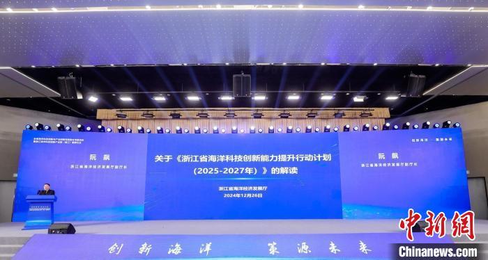 中新网杭州12月26日电(鲍梦妮)12月26日,“创新海洋 策源未来”浙江省海洋科技创新与产业创新深度融合专题活动在杭州举行。现场,浙江省海洋经济发展厅副厅长阮飙对《浙江省海洋科技创新能力提升行动计划(2025-2027年)》(下称《行动计划》)进行解读,将其重点任务概括为实施“四大工程”。