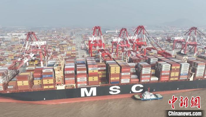 今年洋山港口岸入出境(港)船舶艘次破万,且靠港船舶以超大型集装箱为主。(叶真于 摄)
