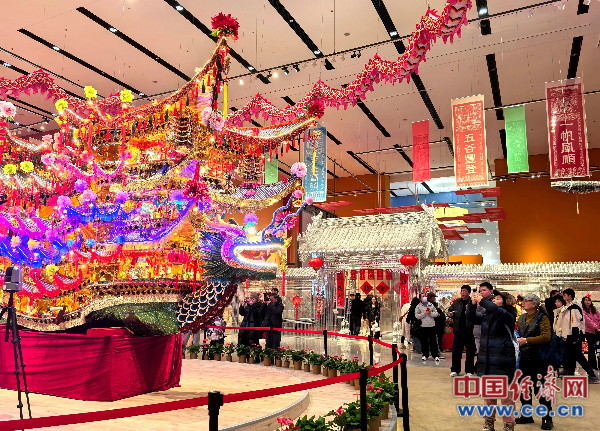 在中国工艺美术馆(中国非物质文化遗产馆)展厅,集木工、油彩、纸扎、龙灯、刻纸等工艺于一体的乐清首饰龙人气颇旺。每年元宵节前后,乐清各地都会举行盛大的首饰龙巡演活动,人们期望首饰龙能带来风调雨顺、五谷丰登。 中国经济网记者魏金金/摄