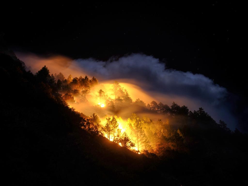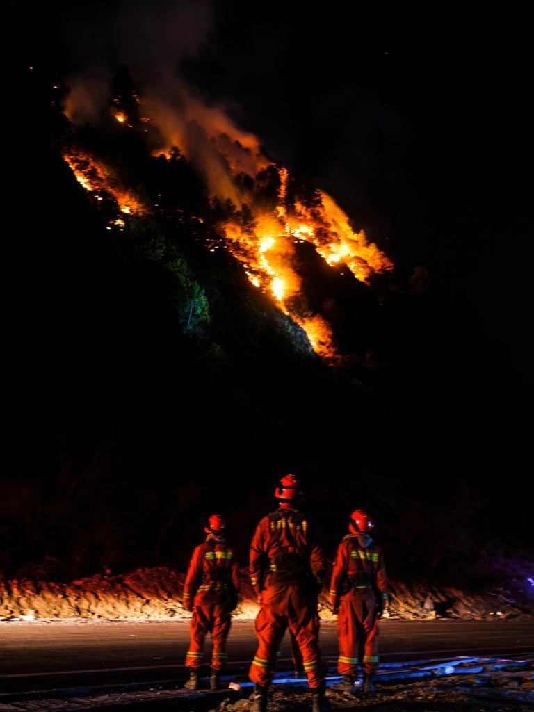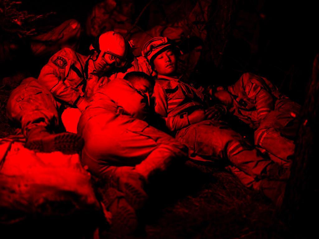 凌晨1点,风最弱的时候,唐天钧和贺奎带人兵分两路上山打火。消防员吉胡布铁被水枪误射到眼睛,啥也看不到了,过了好久才恢复光感。这一夜,大家衣服湿了干,干了又湿,一直奋战到天亮明火熄灭,才拖着疲惫的身躯下山。