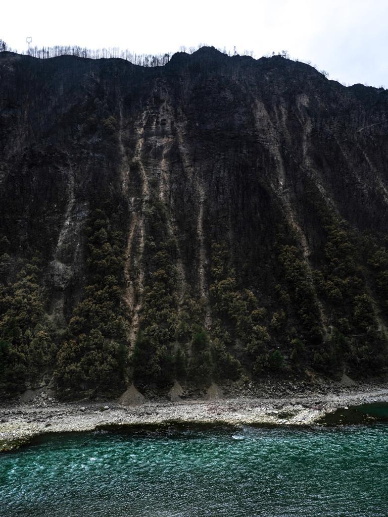 雅江县雅砻江畔扑灭大火后的山林(3月25日摄)。