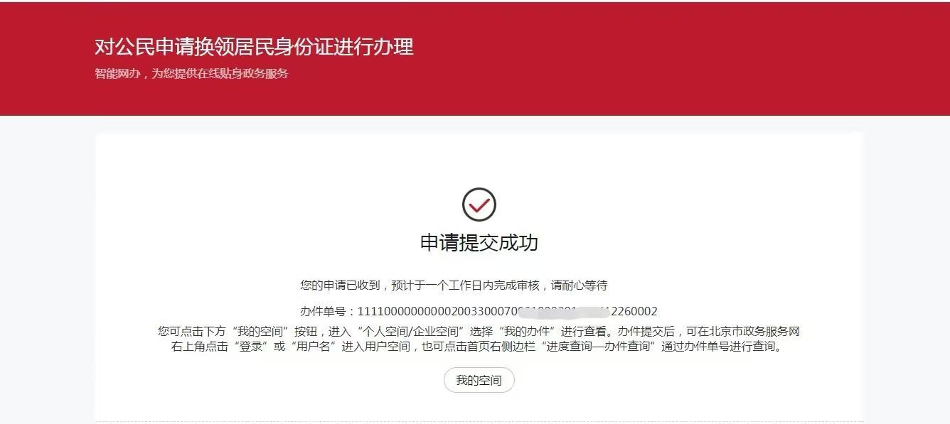 第一步:使用电脑终端登录北京市政务服务网,通过搜索关键字“身份证”,查找政务服务事项,选择您要办理的类型,点击“网上办理”,提交个人申请,并等待公安机关审核,1个工作日内以短信方式推送审核结果。