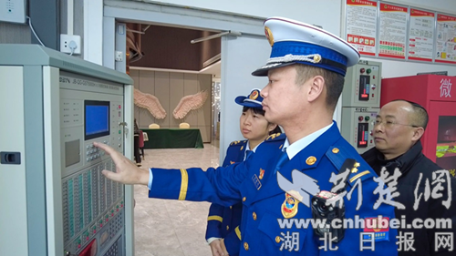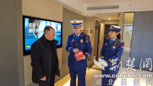 消防监督员现场抽查宾馆、酒店等场所内消防设施。通讯员供图