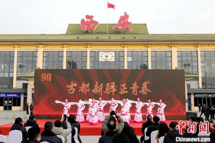 图为西安站南广场上的庆祝活动。中新网记者 张远 摄