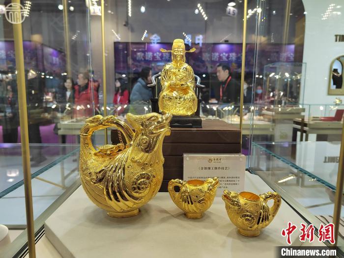 12月27日,“CSJE 2024第11届上海国际珠宝展”开幕,图为展商展出的精美黄金工艺品。中新网记者 姜煜 摄