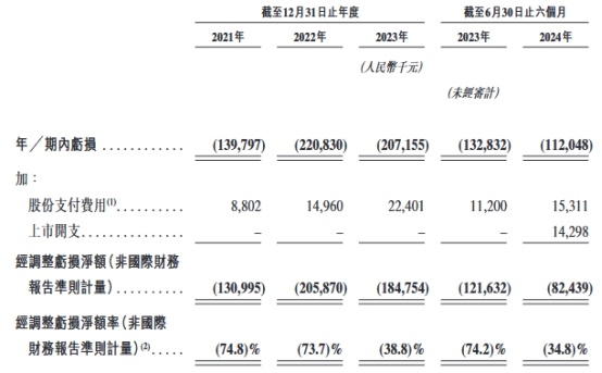 同期,公司经调整亏损净额(非国际财务报告准则计量)分别为131.0百万元、205.9百万元及184.8百万元、82.4百万元。
