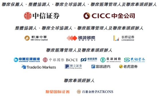佑驾创新的联席保荐人、整体协调人、联席全球协调人、联席账簿管理人及联席牵头经办人为中信证券(香港)有限公司、中国国际金融香港证券有限公司;整体协调人、联席全球协调人、联席账簿管理人及联席牵头经办人为软库中华金融服务有限公司、国证国际证券(香港)有限公司、长桥证券(香港)有限公司;联席账簿管理人及联席牵头经办人为申万宏源证券(香港)有限公司、中银国际亚洲有限公司、浦银国际融资有限公司、农银国际证券有限公司、民银证券有限公司、TradeGo Markets Limited、辉立证券(香港)有限公司、富途证券国际(香港)有限公司、老虎证券(香港)环球有限公司;联席牵头经办人为复星国际证券有限公司、百惠证券有限公司。
