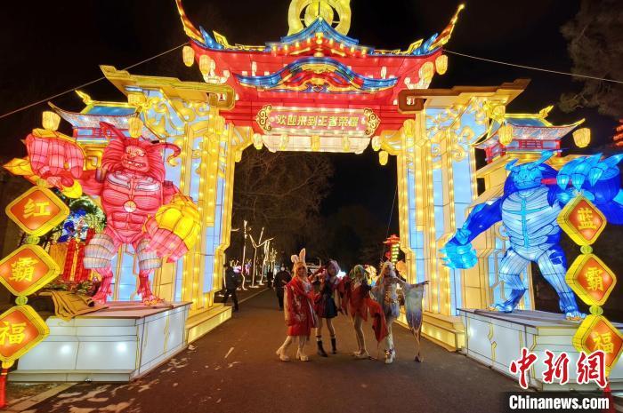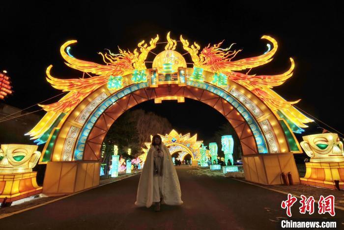 中新网沈阳12月27日电 (记者 赵桂华)2025年沈阳关东影视城迎春灯会,12月27日晚璀璨启幕。超人气游戏《王者荣耀》彩灯、国宝级历史遗迹《探秘三星堆》彩灯首次亮相东北,成为游客争相打卡热点。