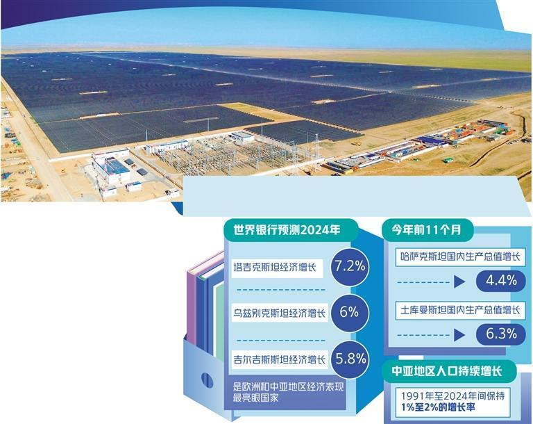 能源合作方面,中国与中亚国家强化战略对接,共同面对绿色转型挑战与机遇,不断释放在油气、采矿、电力、新能源、电动汽车等领域的合作潜力。阿拉木图光伏电站、奇姆肯特炼油厂现代化改造工程、杜尚别热电厂、纳沃伊100兆瓦光伏电站、布哈拉风电输变电工程等大型能源合作项目相继落地,对中亚国家实现碳减排目标、应对全球气候变化挑战、促进可持续发展和经济增长具有重要意义。