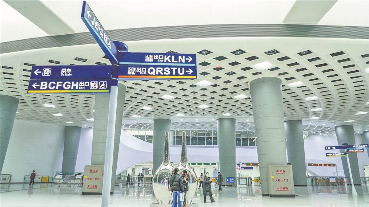这座巨大的地下宫殿,将3条地铁线路车站、2条市政隧道、地下空间、非机动车环道巧妙融合在一个直径200米的圆形工程中。地面有6条道路在此交会形成交通环岛,市民从每条道路均可进入车站。