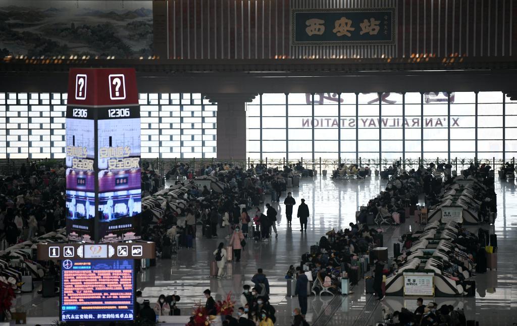 2022年1月17日,旅客在西安站候车大厅候车。新华社记者 李一博 摄