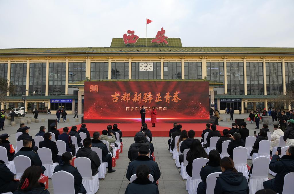 12月27日,中国铁路西安局集团有限公司西安站在西安车站建站九十周年之际举办“古都新驿正青春”主题发布会。新华社记者 李一博 摄