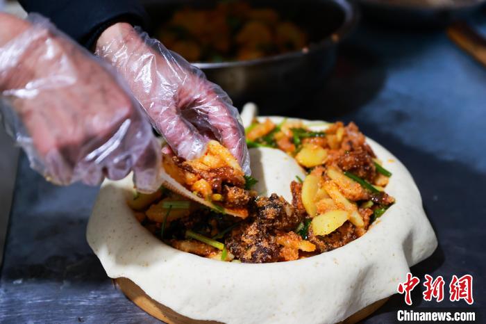 12月22日,四川巴塘,曲珍正在制作“每笼一个,满屉开花”的团结包子。中新社记者 薛蒂 摄