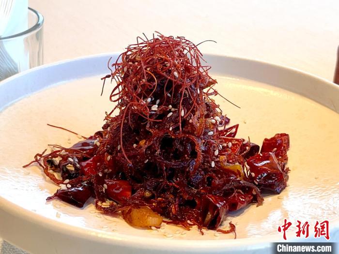 图为在西藏拉萨的新藏式餐厅中的灯影牦牛肉丝。王利文 摄