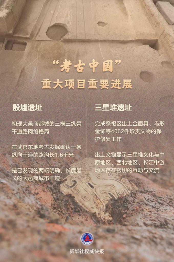 12月26日,国家文物局举行“考古中国”重大项目重要进展工作会,通报了河南省安阳市殷墟遗址、四川省广汉市三星堆遗址、河南省洛阳市二里头遗址、山西省昔阳县钟村墓地的最新考古成果。夏商时期的中华大地,久远而神秘。从二里头到殷墟再到三星堆,文明的火光在时空中留下历历光彩。一系列新发现、新进展,令考古工作者备受启发。
