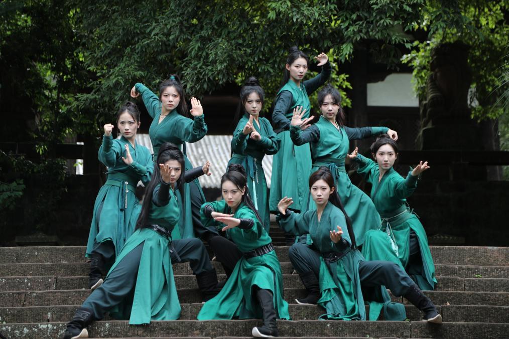 “峨眉派女子功夫团”在巴黎埃菲尔铁塔下拍摄的视频《巴黎中国红》,将武术表演与古筝演奏相结合,把峨眉武术和传统乐器带向世界舞台,海内外全网超6亿次观看。
