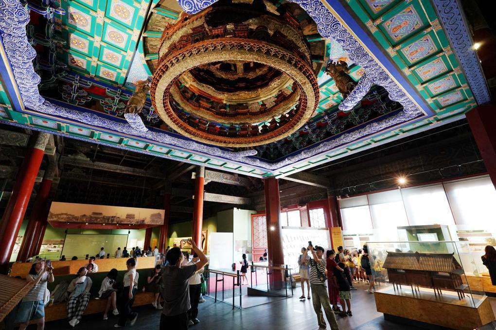 7月17日,人们在北京先农坛太岁殿内参观。(新华社记者 张晨霖 摄)