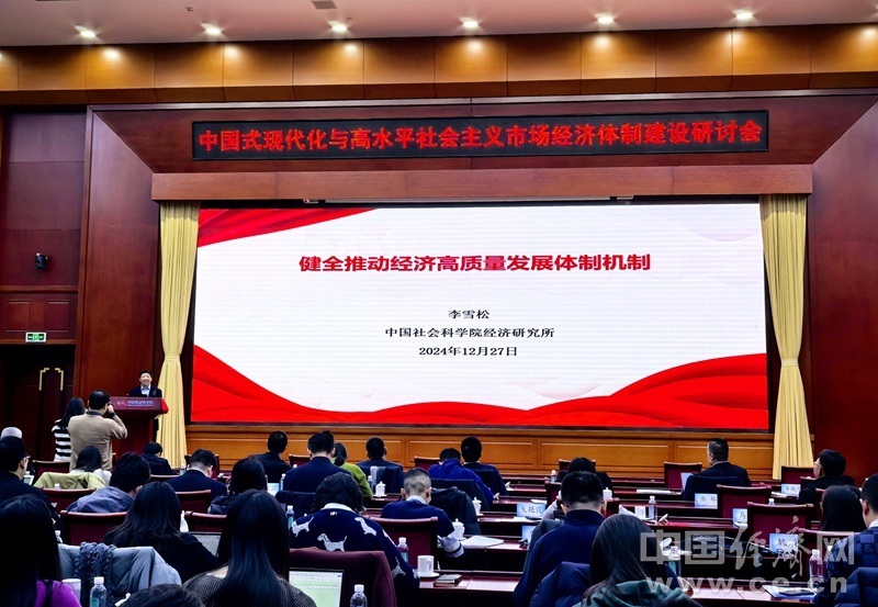 12月27日,中国社会科学院经济研究所所长李雪松在中国式现代化与高水平社会主义市场经济体制建设研讨会上发言。中国经济网记者马常艳 摄