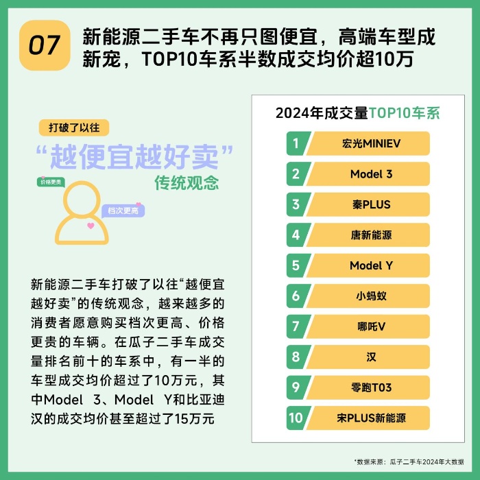 7.新能源二手车不再只图便宜,高端车型成新宠,TOP10车系半数成交均价超10万