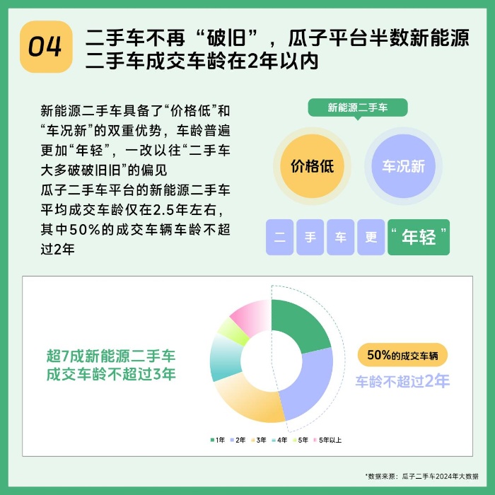 4.二手车不再“破旧”,瓜子平台半数新能源二手车成交车龄在2年以内