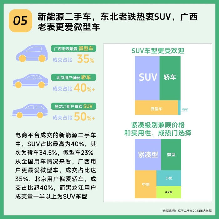 5.新能源二手车,东北老铁热衷SUV,广西老表更爱微型车