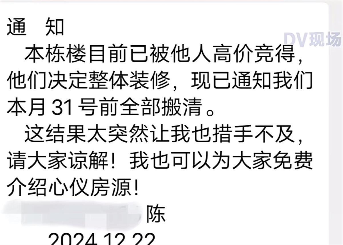房东陈女士在租客群里通知搬离事项(当地媒体报道截图)