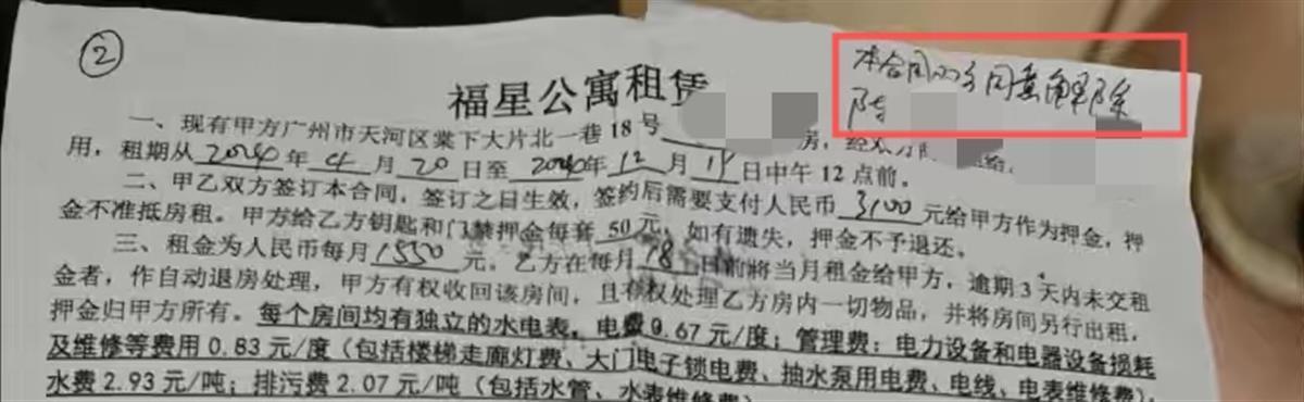 付先生表示,他在租房时,根本不知道房东对这栋楼的经营权只到今年年底,而且也没听房东提过此事。而且,此前他在其他地方租房退房时,也没遇到过需返还合同签字后才能退押金的做法。
