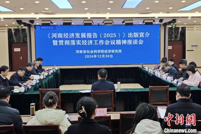 当日,由河南省社会科学院主办的《河南经济发展报告(2025)》出版宣介暨贯彻落实经济工作会议精神座谈会在郑州举行。座谈会围绕发展新质生产力、实现高质量发展、推进中国式现代化建设河南实践开展研讨。