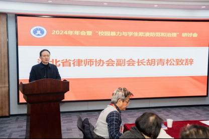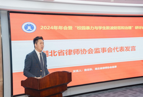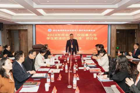 荆楚网(湖北日报网)讯(记者 周光洁 实习生 王俪颖 通讯员 罗洁)12月30日,湖北省律师协会未成年人保护专业委员会在湖北省律师协会举办了“2024年年会暨校园暴力与学生欺凌防范和治理”研讨会。湖北省律师协会副会长胡青松出席会议并致辞,未保会委员和未保志愿律师共计60余人参加会议,本次研讨会由省律协未保会主任李春生主持。