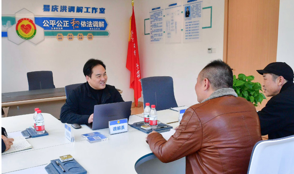 “我曾经接手一起纠纷,双方父母因为自己的孩子打架受伤闹得不可开交,一方父母甚至表示一分钱都不要,就要另一方的孩子‘血债血偿’,现场气氛非常紧张。”易庆洪回忆说,他立即改变调解策略,将“面对面”调解调整为“背对背”调解,将双方隔开。他一方面平复孩子父亲的情绪并询问核心诉求,另一方面将核心诉求告诉对面父母,让其知晓利害关系,并给出解决建议。最终双方达成和解,避免了矛盾进一步升级。