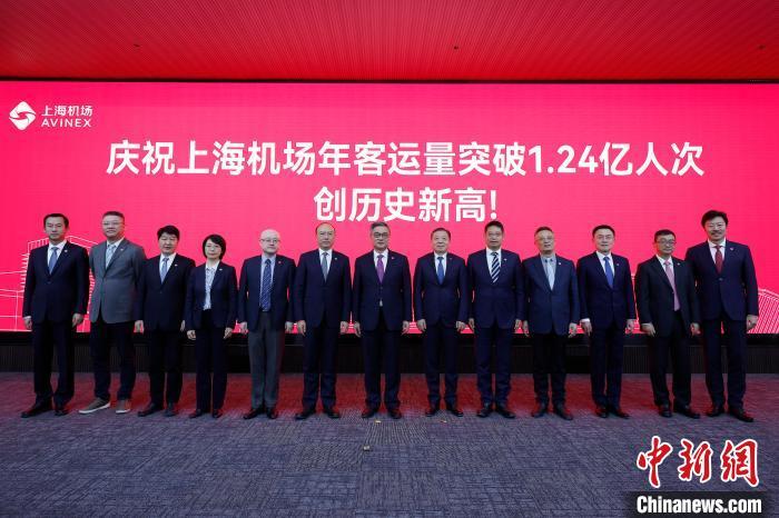 上海机场集团相关领导见证2024年上海机场年客运量突破1.24亿人次。中新网记者 殷立勤 摄