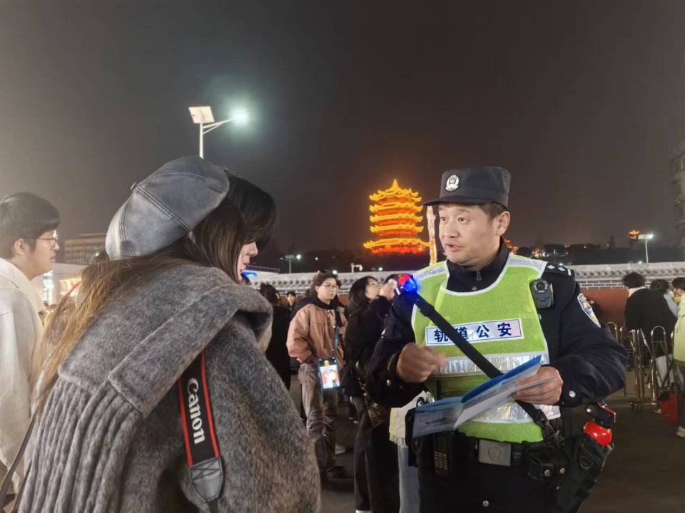 今年跨年夜,轨道线网总客流达534.3万人次。面对大客流,武汉轨道公安结合活动现场临近地铁车站情况,建立“1+3+17”指挥体系,并主动对接运营公司,全力做好秩序维护和客流疏导等工作。当晚,武汉轨道公安全警全勤,在客流密集的江汉路、循礼门、光谷广场等重点车站叠加投入警力参与执勤。