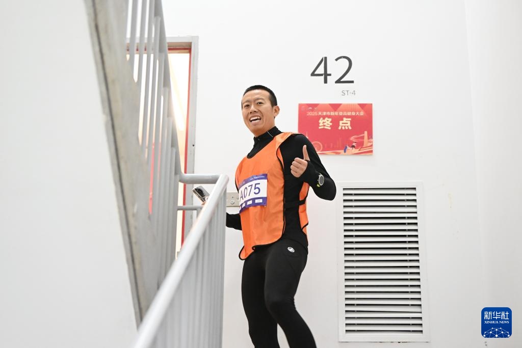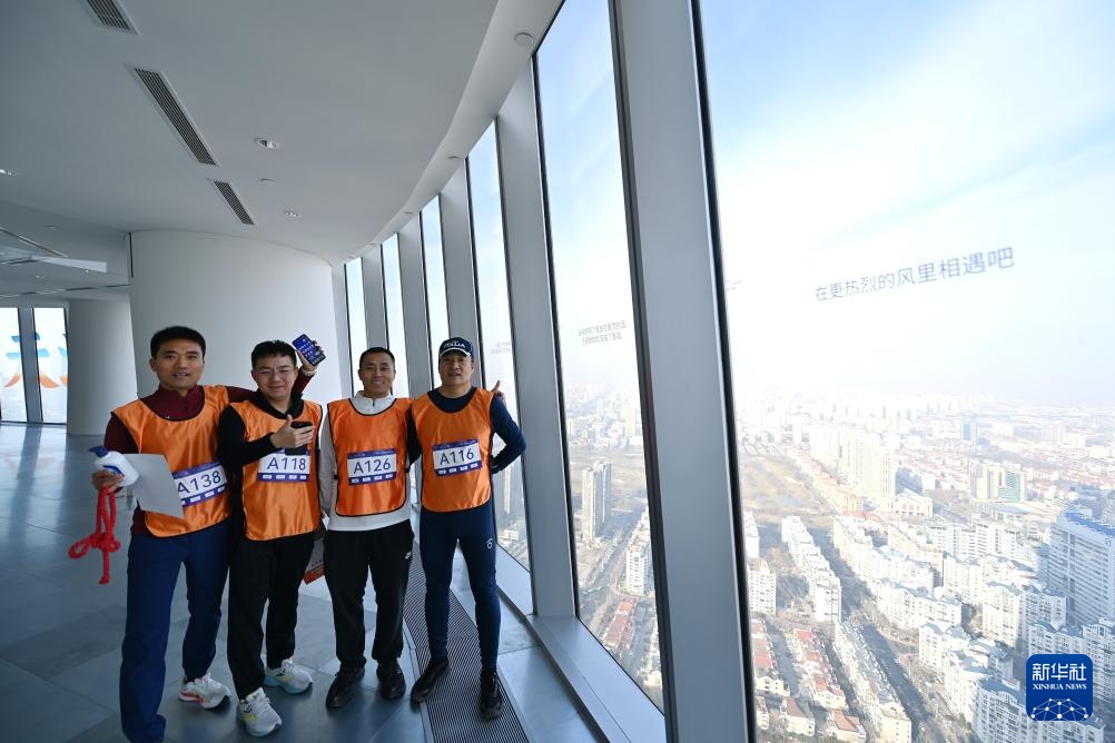 当日,2025天津市新年登高健身大会在滨海新区周大福金融中心举行。数百名健身爱好者攀登1200级阶梯,以登高健身的形式迎接新年的到来。